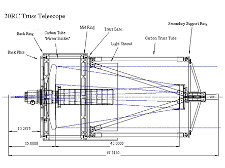 The 100mm Field Corrector provides a curvature of around 15% and a field of view of 29.3 arc/mins square with the u9000 or the u16m. This telescope was built in 2003 and needed some modifications to reduce the effects of scattered light once the large format CCD cameras were used. Here is a write-up of the modifications that I preformed.