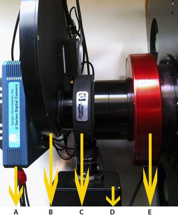B: Apogee 10 Position Filter Wheel Loaded with Astrodon 50mm sq.