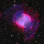 Cassiopeia A (Cas A) is a supernova remnant around 11,000 light-years away. Though it is very faint in optical light, it is one of the brightest extra solar radio sources in the sky. The lower right image shows the X-ray engery from NASA